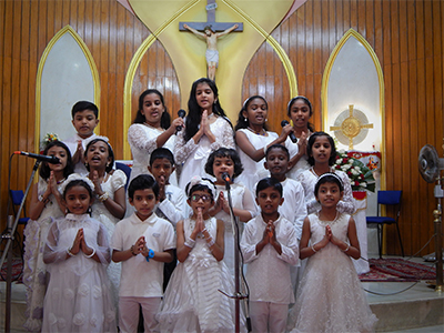 Retreats and Seminars for children are conducted at regular intervals for strengthening the faith of children. All the children are divided into 3 groups, named as St. Claret, St. Mary and St. Joseph. Special training is also given to the children for serving on the altar. Children have got their choir group, who sing mainly for Saturday Mass. We also have a Library to support the children in their faith formation.